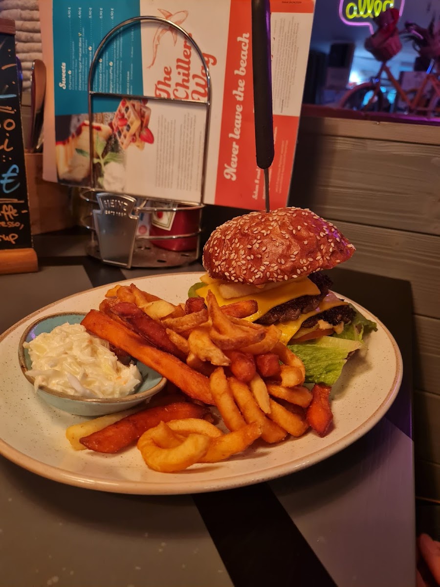 CHILLERS takes pride in its extensive menu that showcases a variety of burgers, each more delectable than the last. The ALLAMERICAN CHEESEBURGER, topped with cheddar cheese, crunchy salad, fresh tomatoes, pickles, and grilled onions, will have your taste buds dancing in delight for just €14.90. If you're feeling adventurous, try the ANIMAL STYLE burger, featuring crispy bacon, extra cheese, and a savory layer of fries, all drizzled with their signature CHILLERS sauce for €16.90.